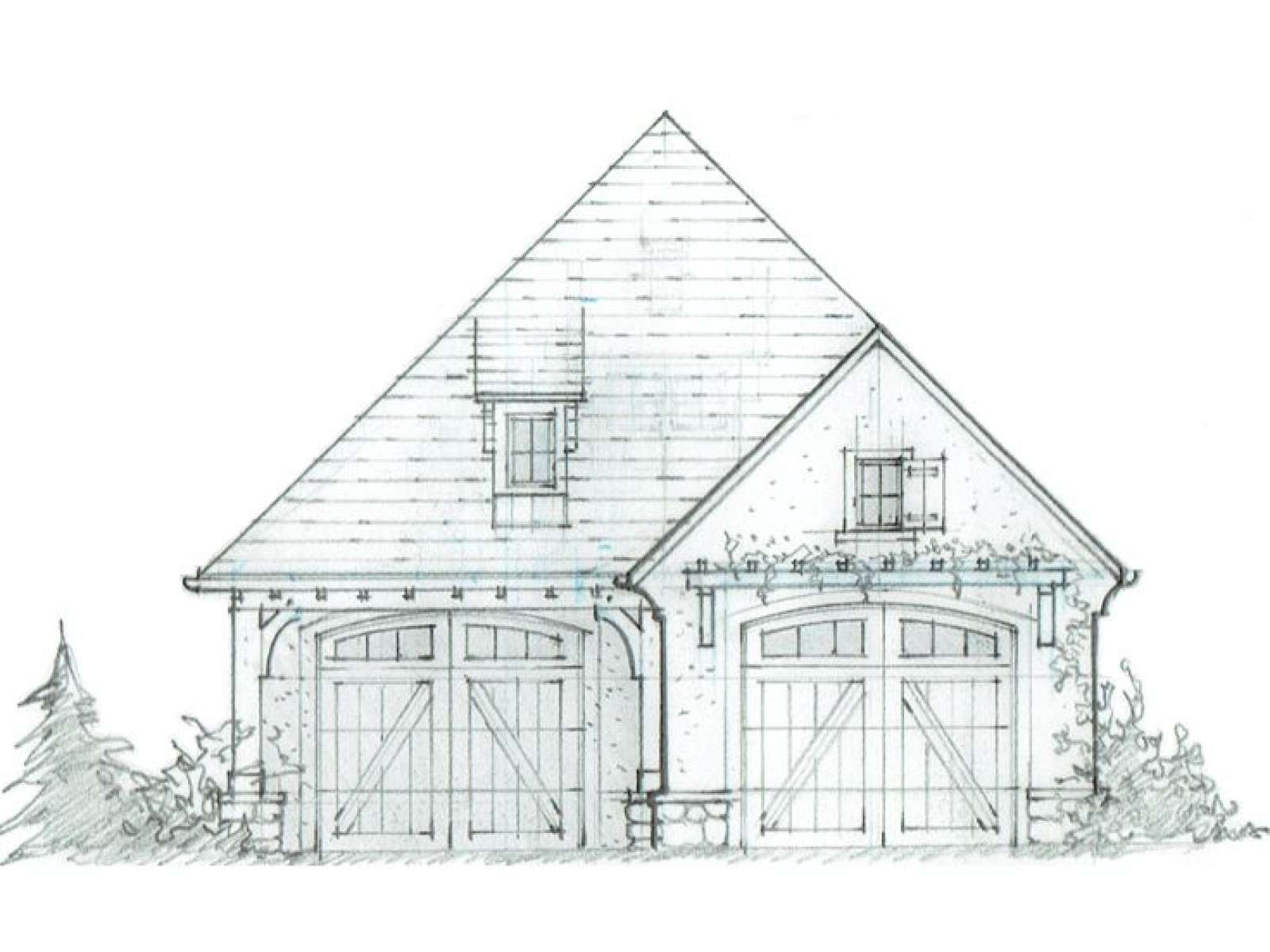 Detached two-car garage plan blends nicely with European homes